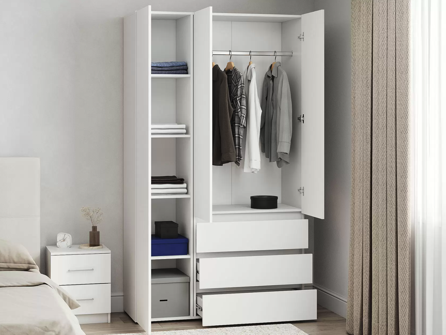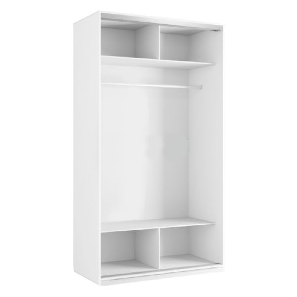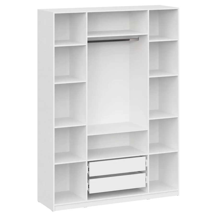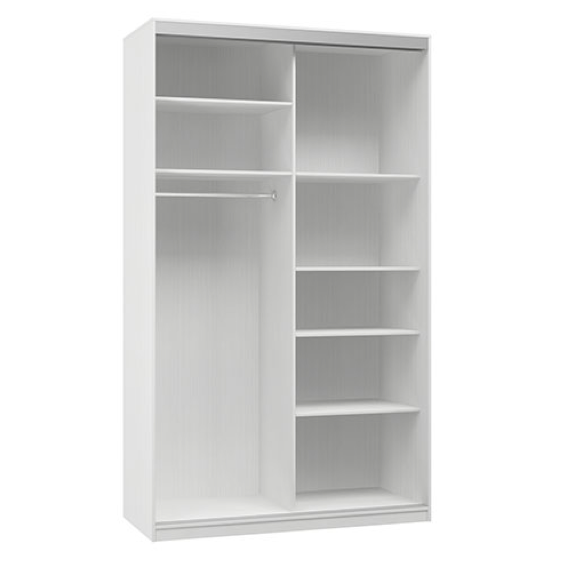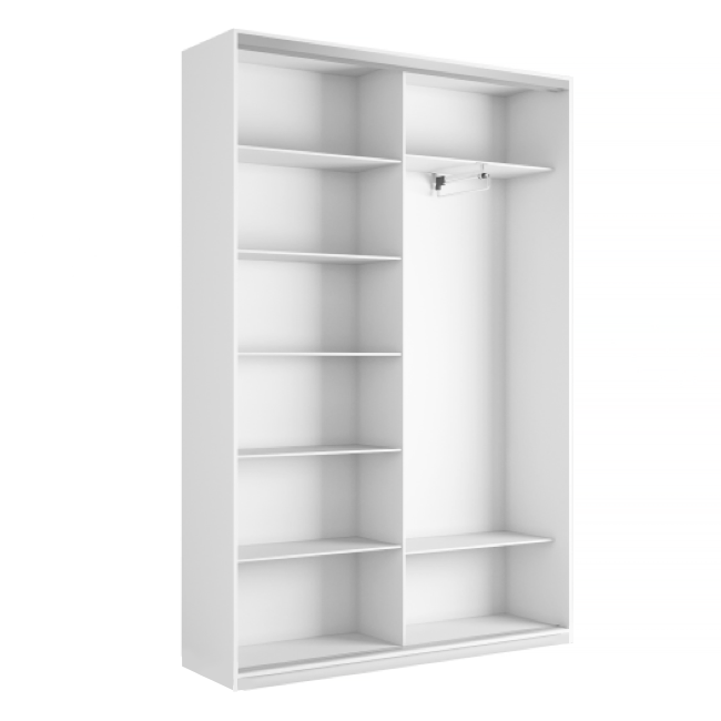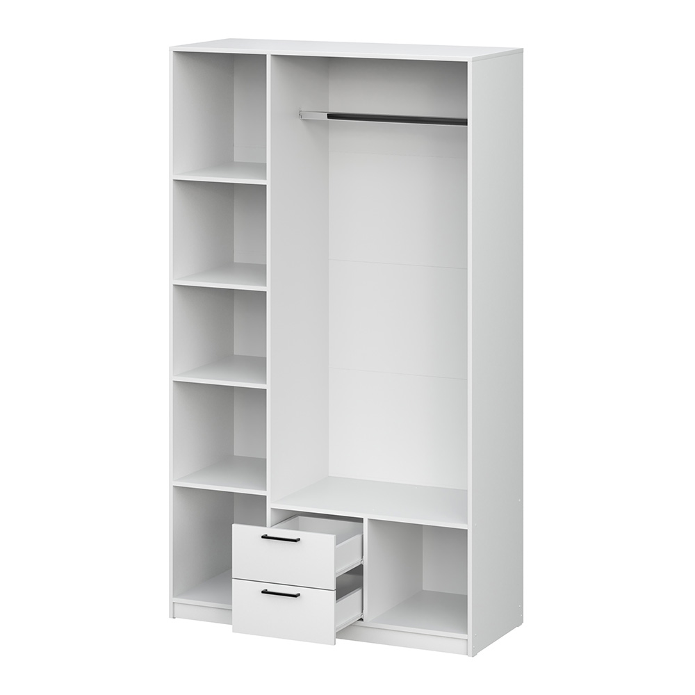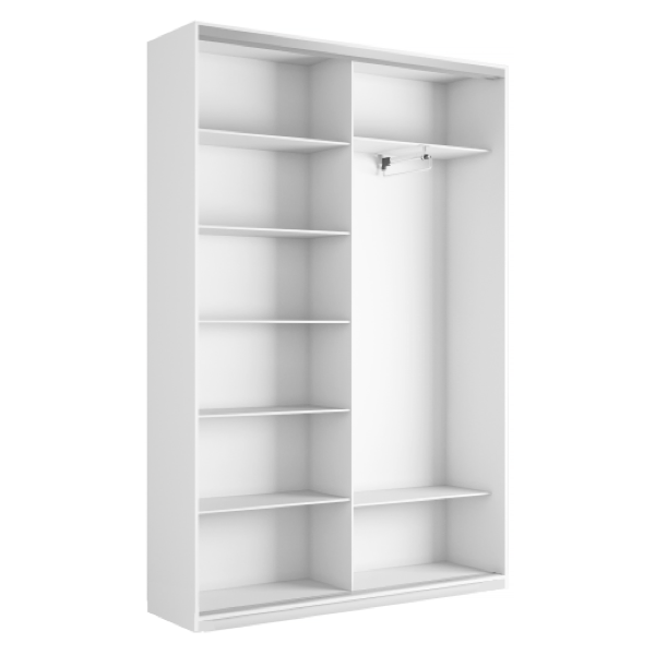 Распашной шкаф Bianca 2 — компактная модель, выполненная в эстетике минимализма. В комплектации с полками и ящиками шкаф подходит для хранения одежды в сложенном виде, белья и домашнего текстиля