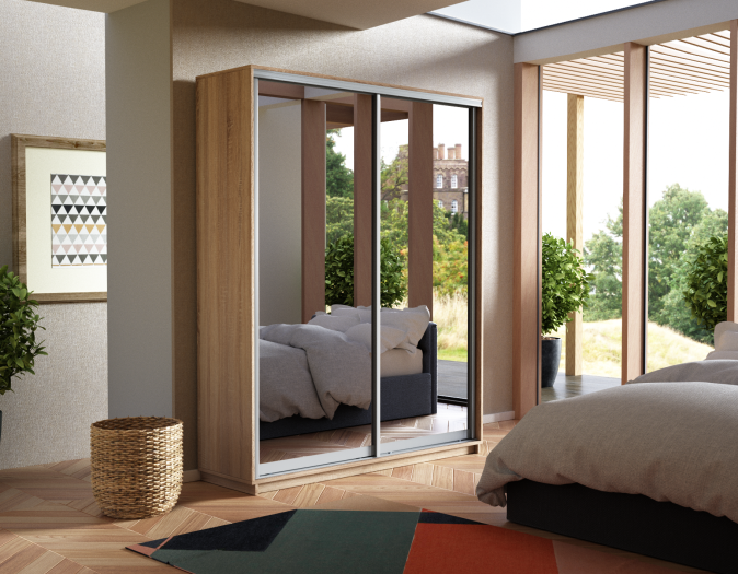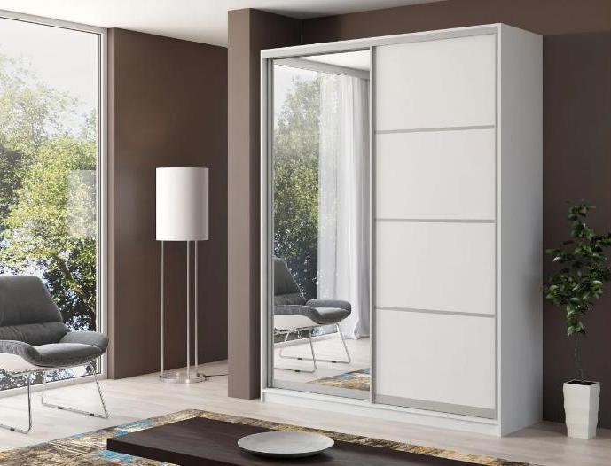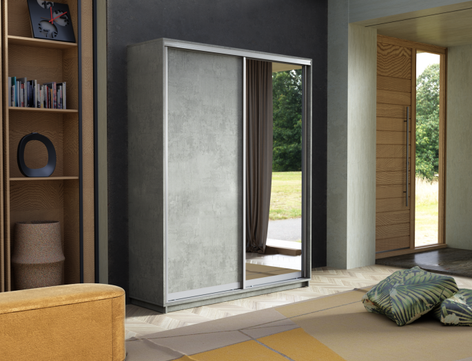 Шкаф «Miro» можно установить в любой комнате квартиры или офиса. Зеркальный фасад позволяет преобразить интерьер и создать оригинальный и изысканный дизайн. Наполнение шкафа состоит из полок для хранения вещей в сложенном виде, одной штанги для вешалок из хромированного металла и двух выдвижных ящиков, которые легко открываются, обеспечивая удобное хранение нужных вещей