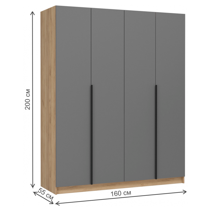 - Габариты (Ш×В×Г): 160 × 200 × 55 см - Материал: ЛДСП Kronospan 16 мм - Особенности: Петли из нержавеющей стали Boyard