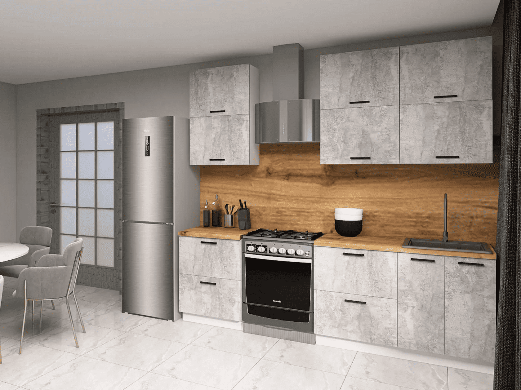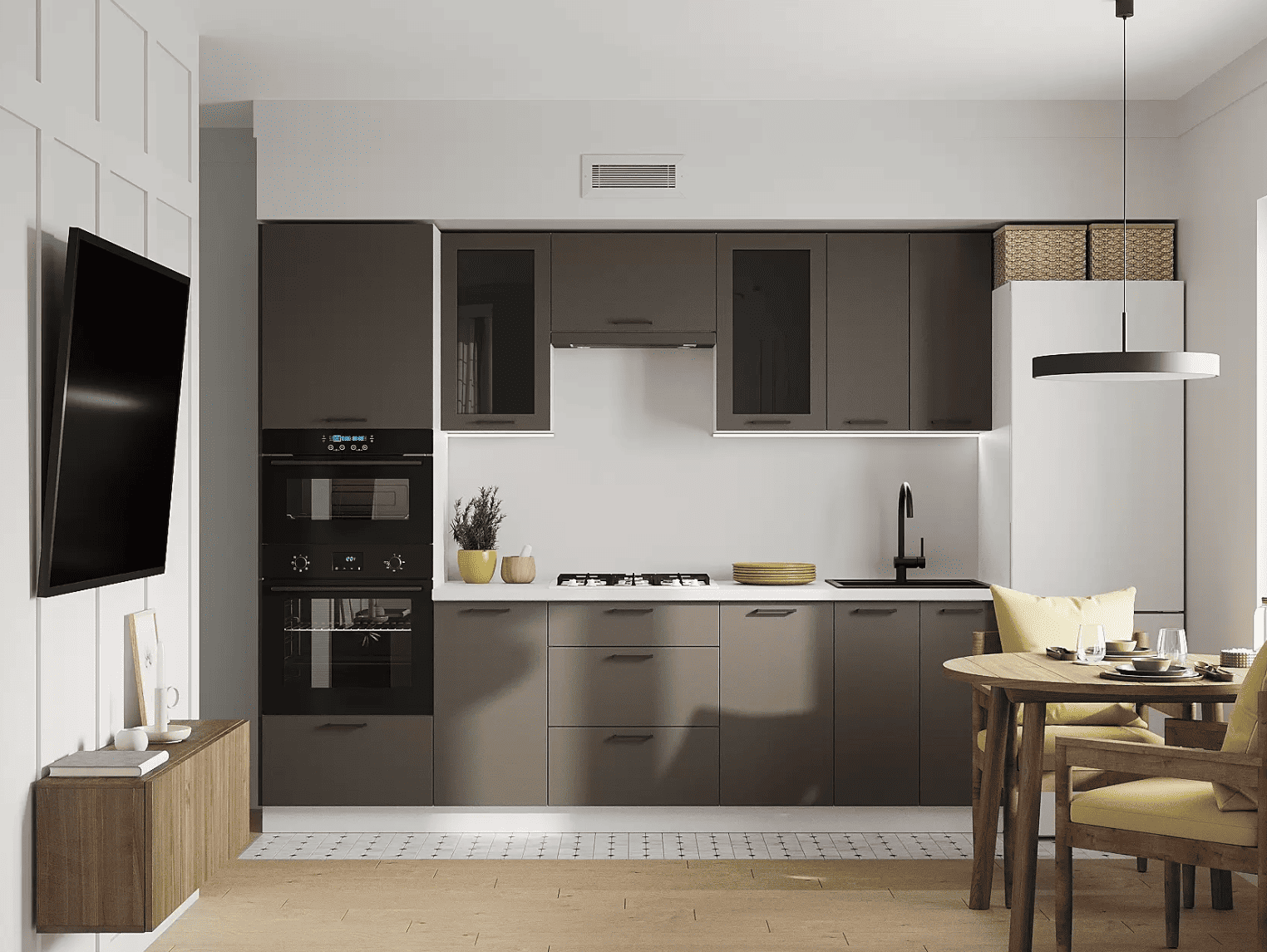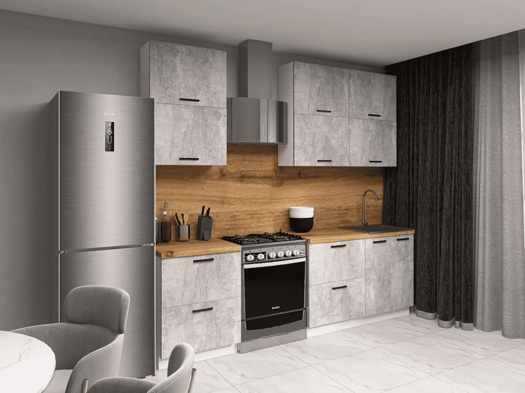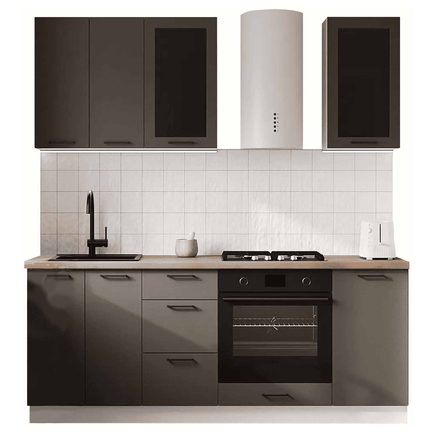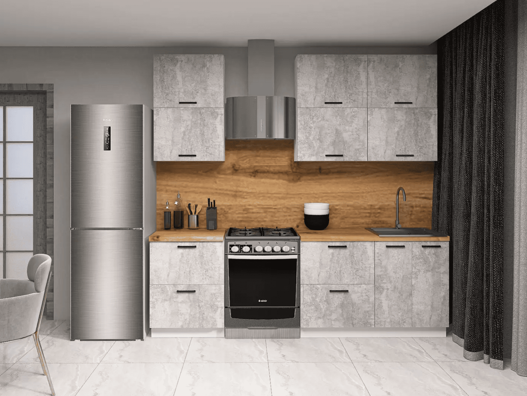 Кухонный гарнитур Olivia — отличный выбор для небольшого помещения или квартиры-студии. Набор обеспечит функциональность и удобство при хранении поварских принадлежностей, посуды и продуктов. Современный стиль мебели создает эстетичный вид