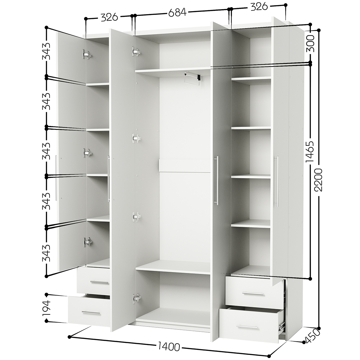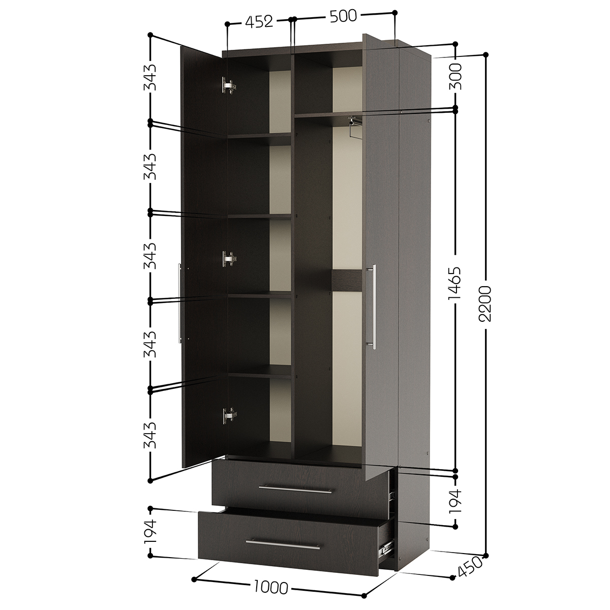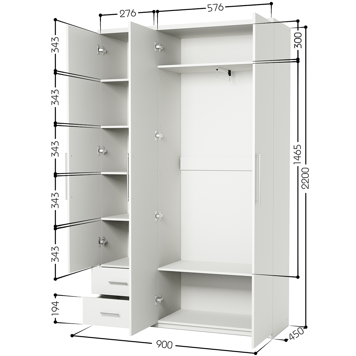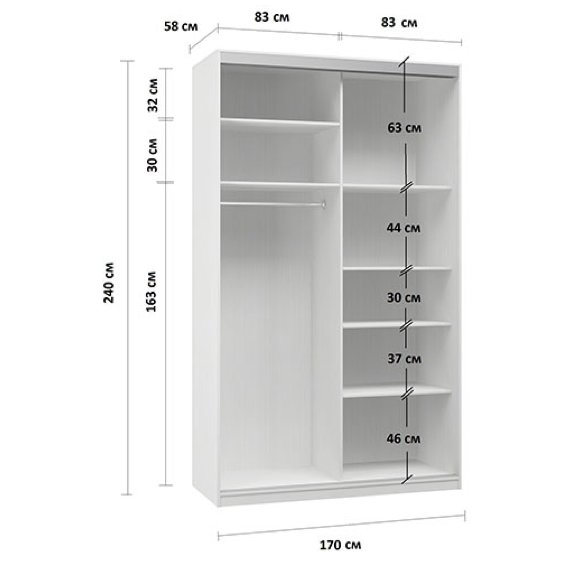 - Габариты (Ш×В×Г): 160 × 210 × 45 см - Материал: ЛДСП Kronospan 16 мм - Особенности: Петли из нержавеющей стали Boyard
