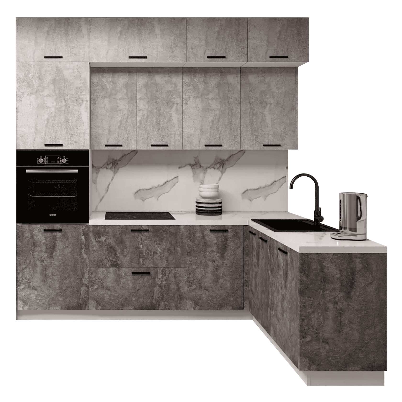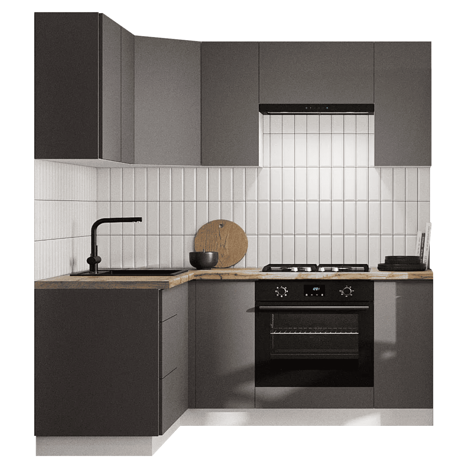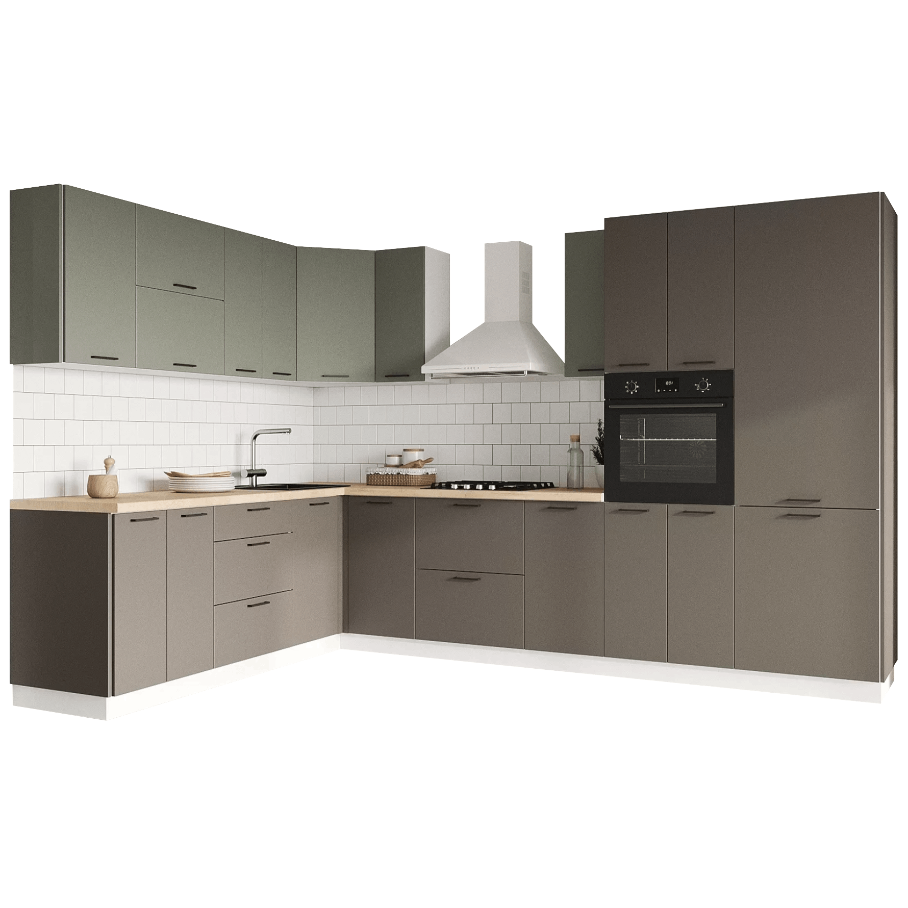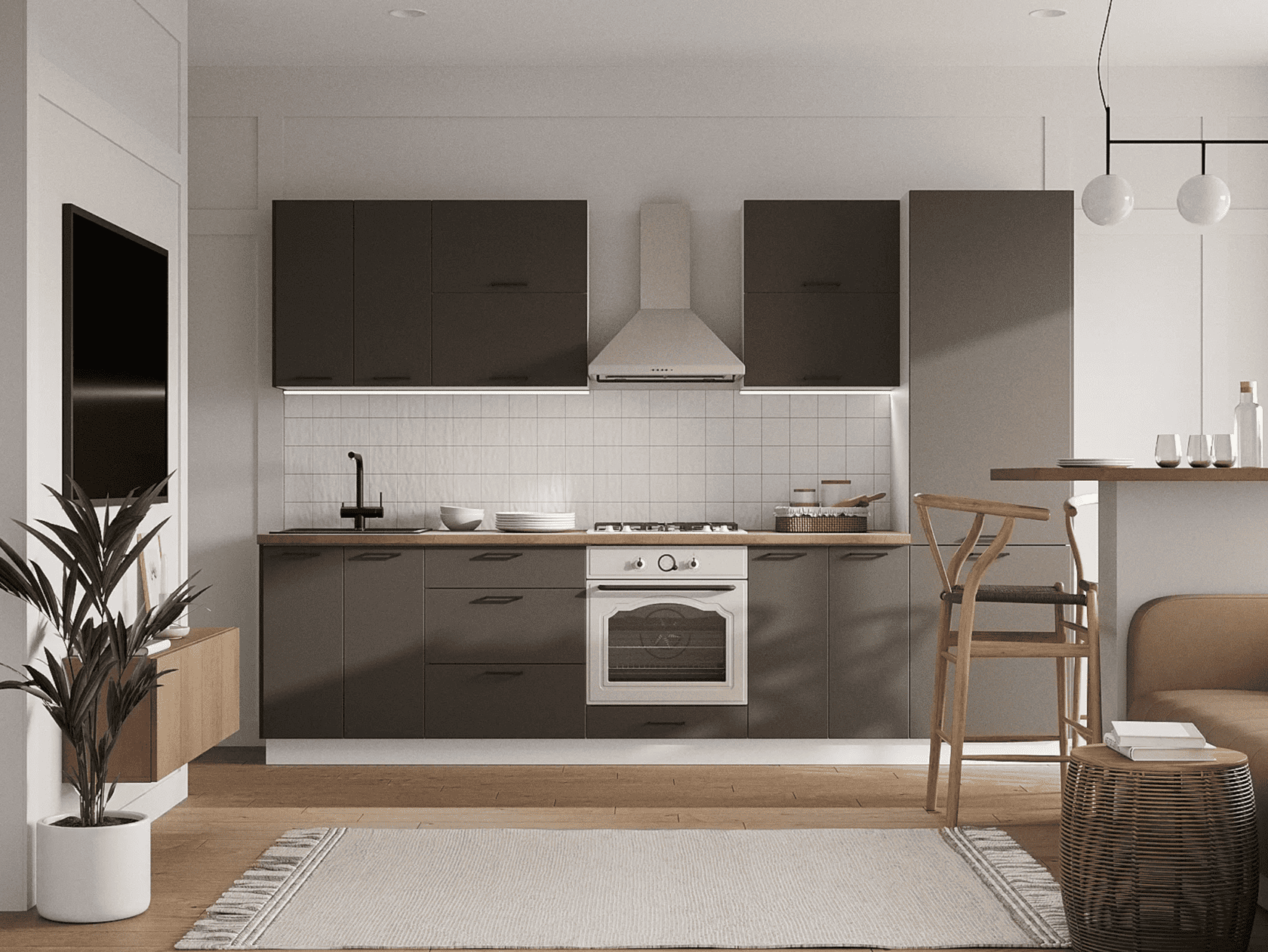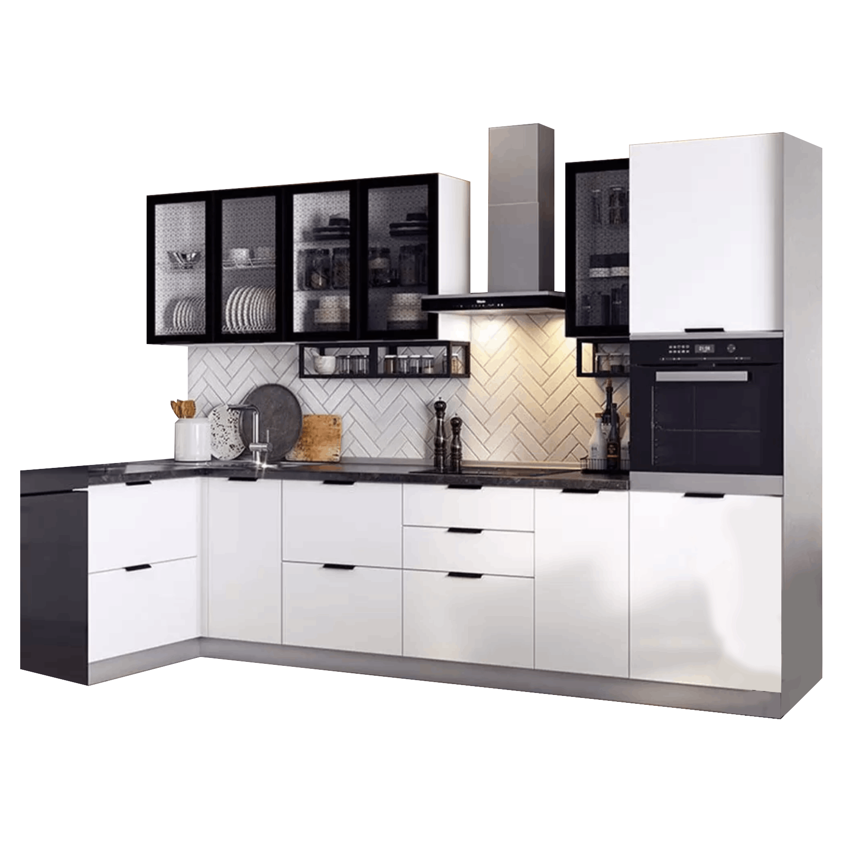 Кухонный гарнитур Triana — функциональное решение для ценителей современного минималистичного дизайна, которое позволит эффективно организовать пространство для хранения посуды и хозяйственных принадлежностей. Благодаря петлям с доводчиками и шариковым направляющим, дверцы и ящики двигаются плавно и бесшумно. Отсутствие внешней фурнитуры создает эффект монолитности, придавая гарнитуру стильный внешний вид. Антресольные шкафы открываются нажатием, а также оснащены газлифтами, что позволит избежать хлопков и резкого закрывания