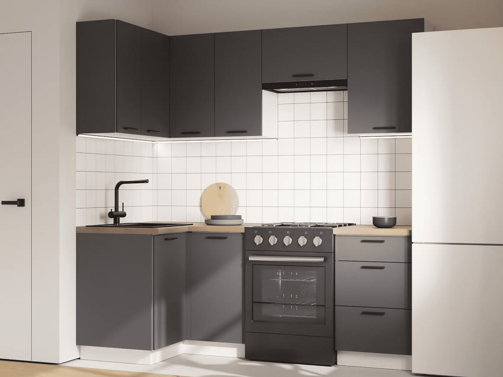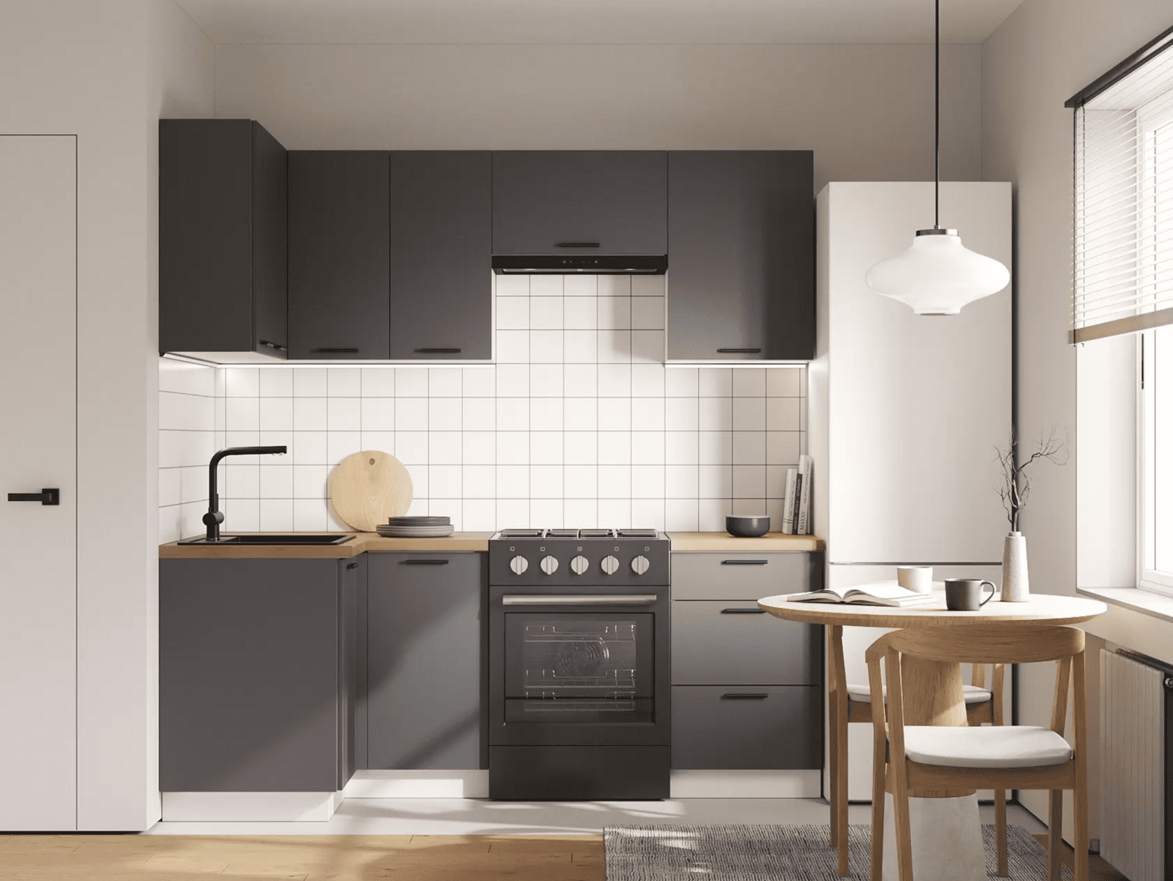 Кухонный гарнитур Nora — идеальное решение для организации порядка в ограниченном пространстве. Мебель позволит создать компактную зону для приготовления пищи и хранения необходимых принадлежностей. Гладкие матовые фасады выглядят актуально и удачно сочетаются с разными стилями оформления интерьера