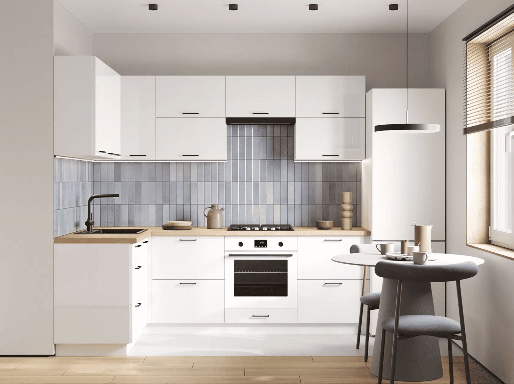 С кухонным гарнитуром Blanca легко оформить современный функциональный интерьер. Вместительные элементы идеально дополняют друг друга, создавая комфортную зону для хранения и приготовления пищи. Приятная текстура фасадов и отсутствие ручек делают уход за гарнитуром легким и необременительным.