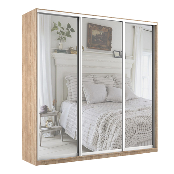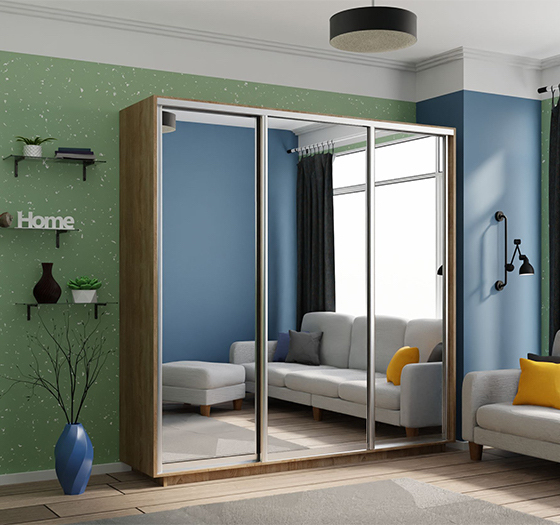 Распашной шкаф «Romi» можно установить в любой комнате квартиры или офиса. Зеркальный фасад позволяет преобразить интерьер и создать оригинальный и изысканный дизайн. Наполнение шкафа состоит из пяти полок для хранения вещей в сложенном виде