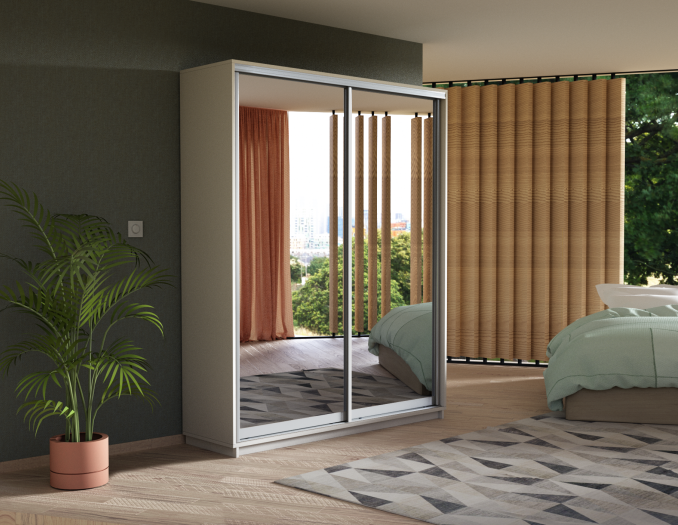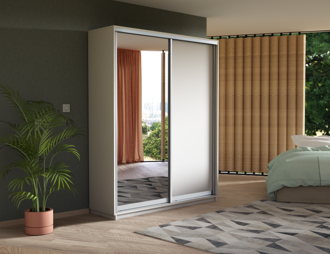 Распашной шкаф «Demi» прекрасно подойдет для организации системы хранения в любой комнате. Две двери имеют зеркальный фасад с фацетом, который позволяет преобразить интерьер и создать оригинальный и изысканный дизайн