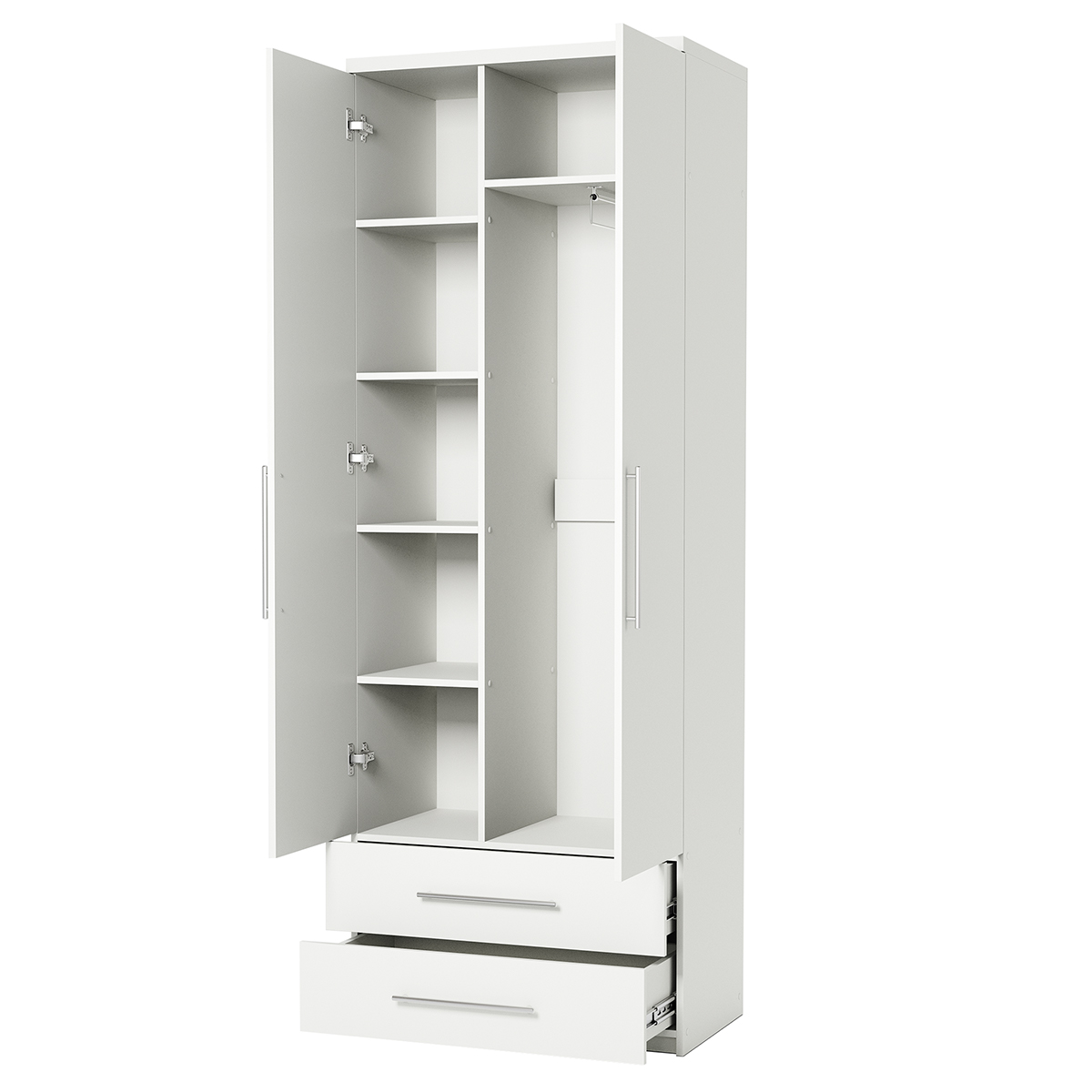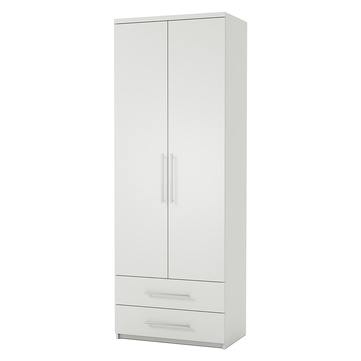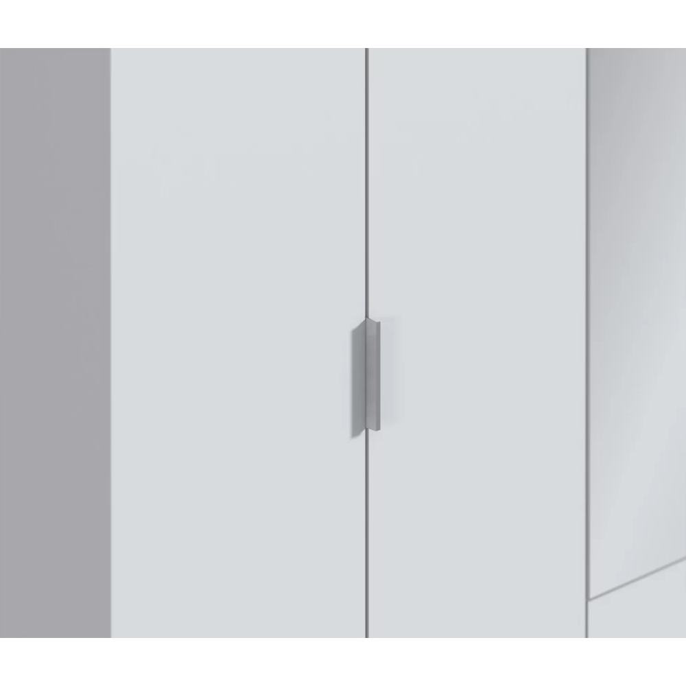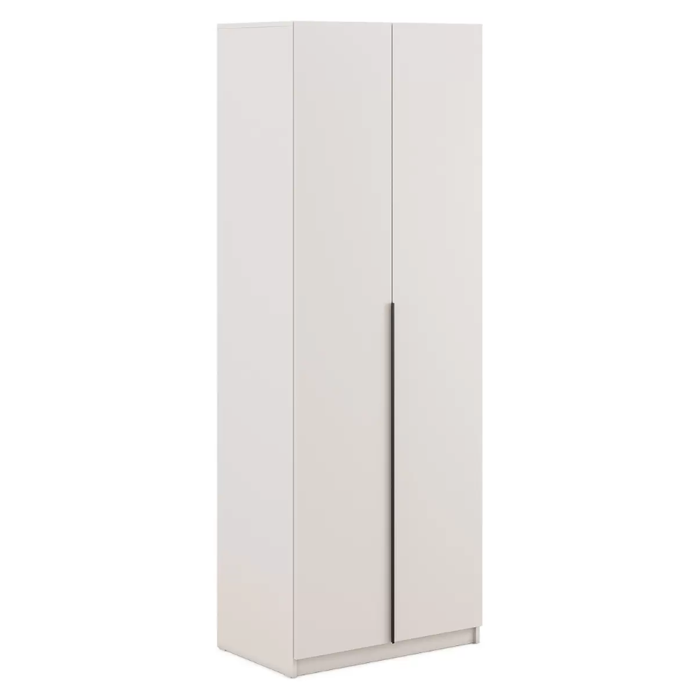 Двухдверный распашной шкаф Bianca — стильное и практичное решение для дома. Матовая поверхность, лаконичная чёрная алюминиевая ручка, прочные петли с доводчиками. Внутри — штанга для вешалок. Компактный, но вместительный. Подходит для спальни, детской, прихожей. Легко собирается