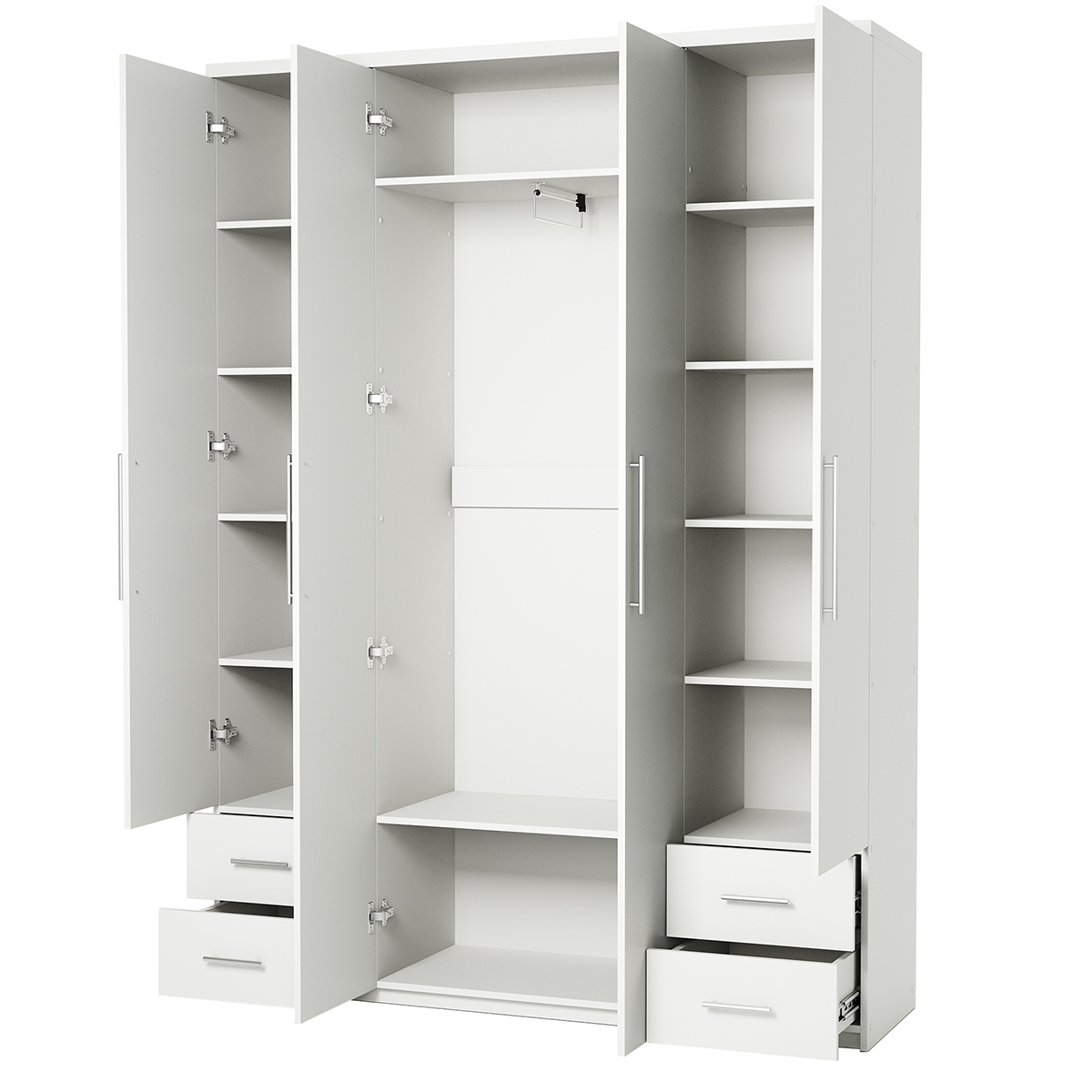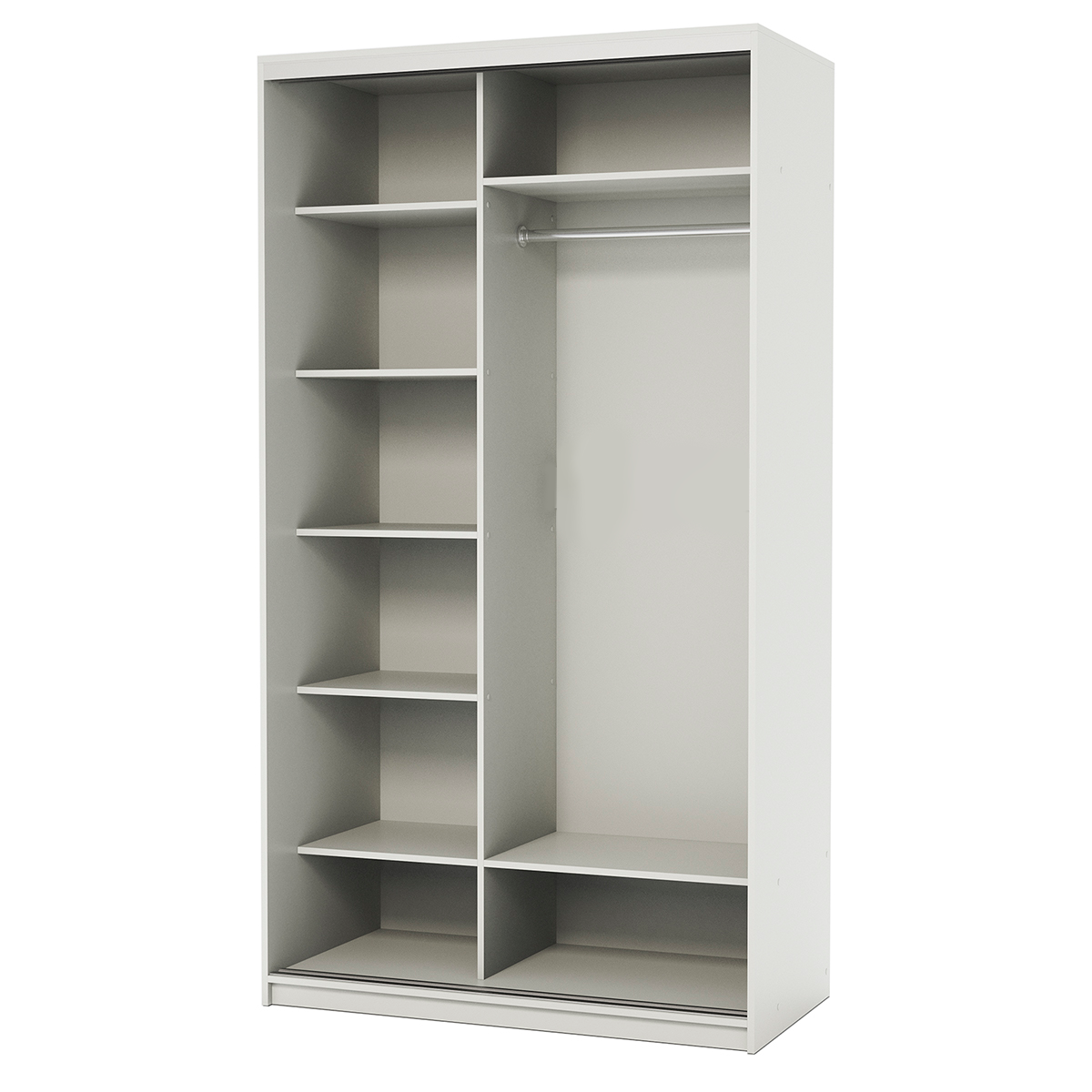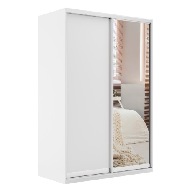 Двухдверный распашной шкаф Bianca — стильное и практичное решение для дома. Матовая поверхность, лаконичная чёрная алюминиевая ручка, прочные петли с доводчиками. Внутри — штанга для вешалок. Компактный, но вместительный. Подходит для спальни, детской, прихожей. Легко собирается
