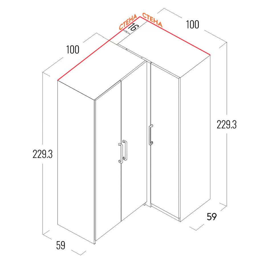 - Габариты (Ш×В×Г): 100 × 230 × 100 см - Материал: ЛДСП Kronospan 16 мм - Особенности: Петли из нержавеющей стали Boyard
