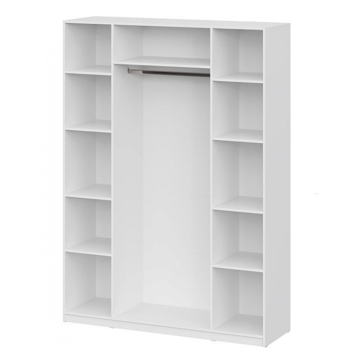 Шкаф Vanessa можно установить в любой комнате квартиры или офиса. Наполнение шкафа представлено двумя отделениями: в одном – установлены пять полок для хранения сложенных вещей, в другом – две полки и хромированная выдвижная штанга для размещения одежды на вешалках, внизу есть ниша для обуви
