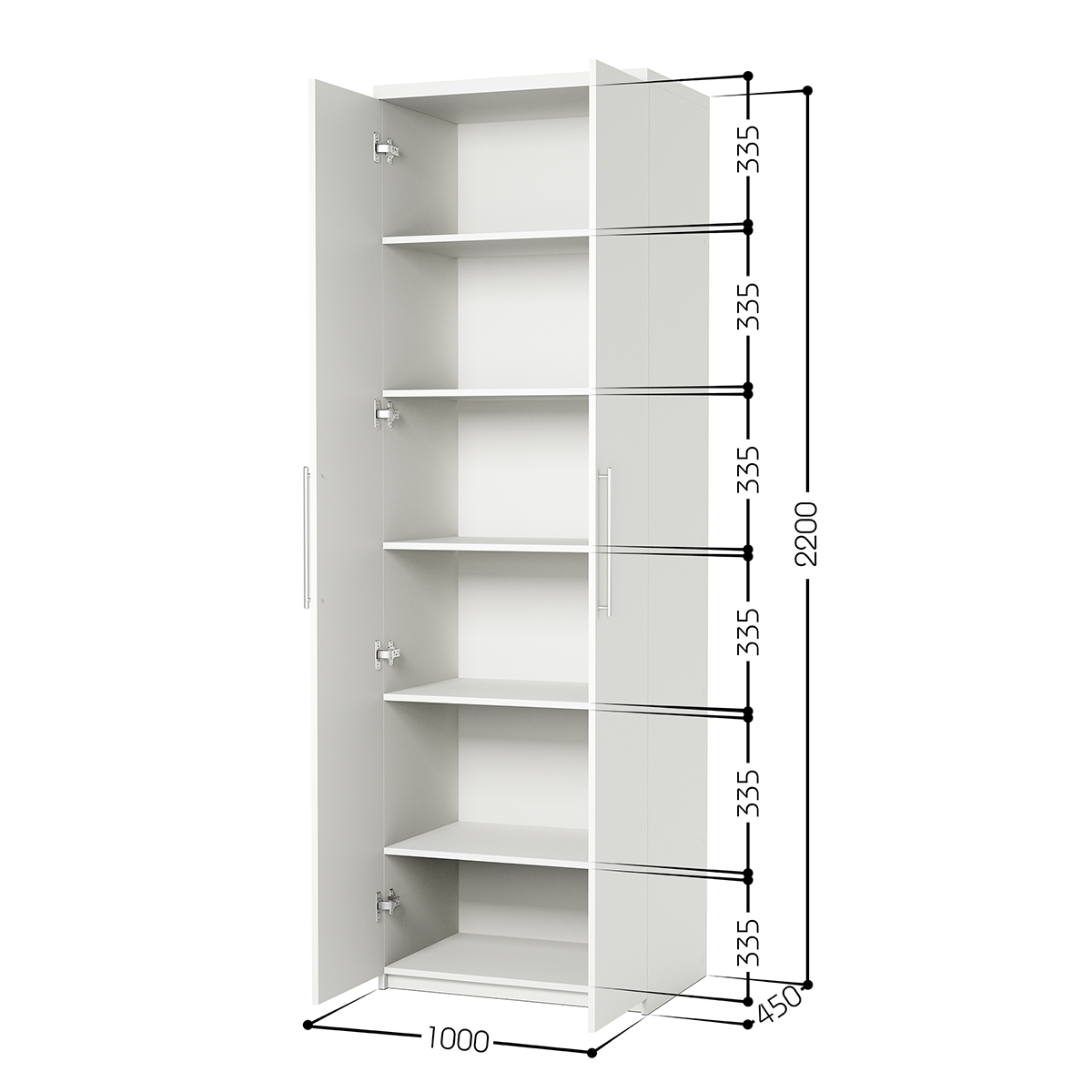 - Габариты (Ш×В×Г): 100 × 220 × 45 см - Материал: ЛДСП Kronospan 16 мм - Особенности: Петли из нержавеющей стали Boyard
