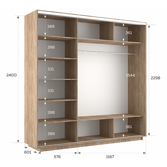- Габариты (Ш×В×Г): 270 × 225 × 55 см - Материал: ЛДСП Kronospan 16 мм - Особенности: Петли из нержавеющей стали Boyard